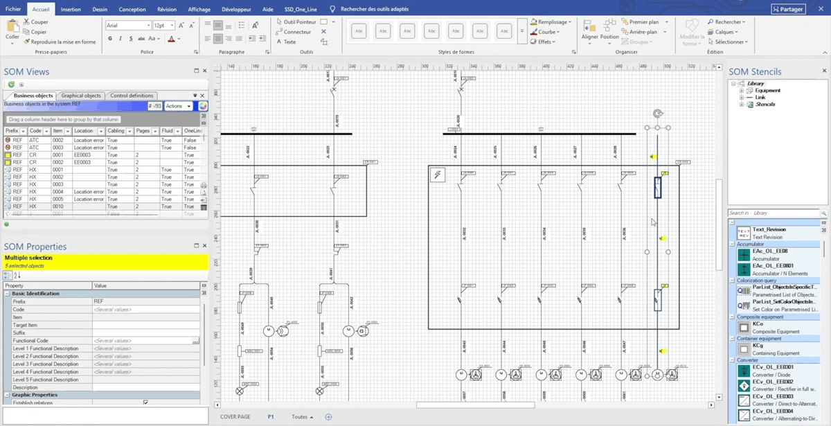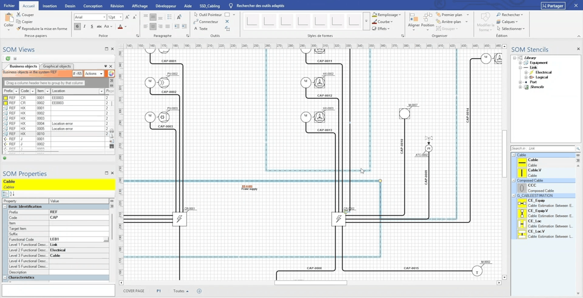 The solution is specifically tailored for the design and documentation of functional and system architecture using a Model-Based Systems Engineering (MBSE) approach, integrating process engineering with PFDs and P&IDs (Process Flow and Piping and Instrumentation Diagrams), as well as electrical engineering with Single-line Diagrams, Cabling, and Synoptic Diagrams.