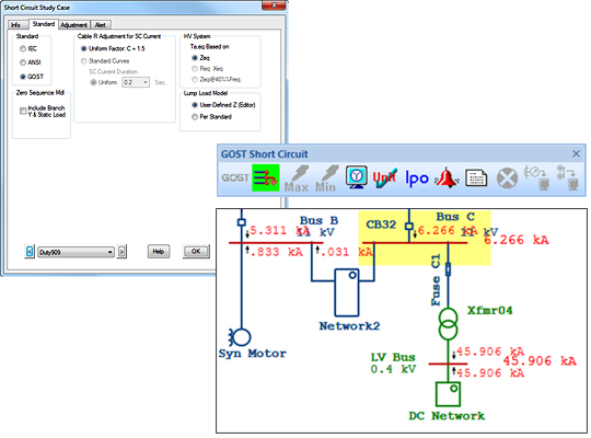 ETAP Short Circuit software calculation complies with GOST R 52735 Standards, in addition to ANSI / IEEE and IEC standards. Built-in intelligence allows the short circuit program to automatically apply all GOST factors and ratios required for high voltage short circuit calculations. By automating the process with multiple calculation and results analysis tools, ETAP removes the guess-work from short circuit studies, and save users hundreds of hours of tedious hand calculations
